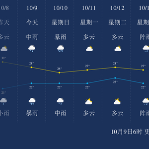 中国天气网讯 今天是10月9日星期六,一起来看天气。