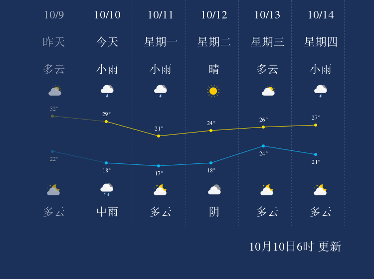 中国天气网讯 今天是10月10日星期日,一起来看天气。