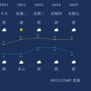 中国天气网讯 今天是10月11日星期一,一起来看天气。
