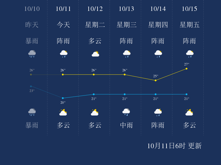 中国天气网讯 今天是10月11日星期一,一起来看天气。
