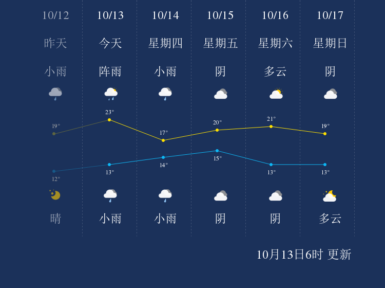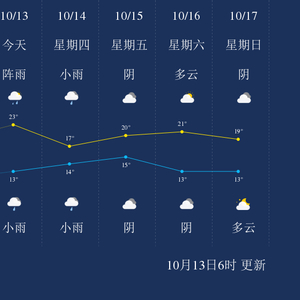 中国天气网讯 今天是10月13日星期三,一起来看天气。