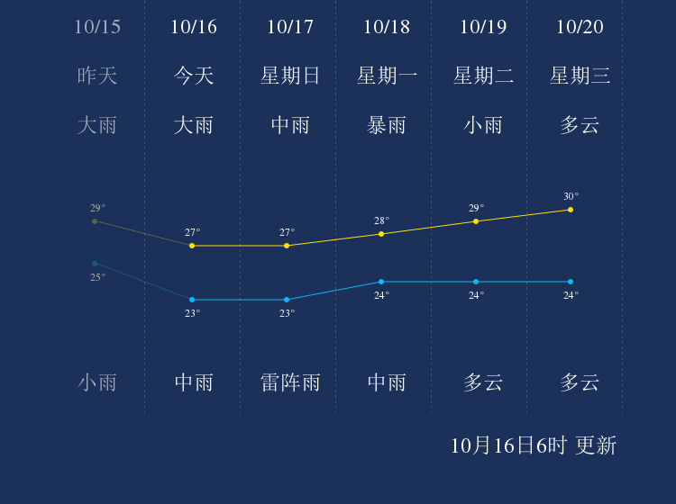 中国天气网讯 今天是10月16日星期六,一起来看天气。