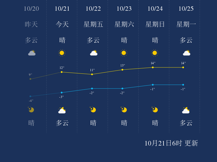 中国天气网讯 今天是10月21日星期四,一起来看天气。