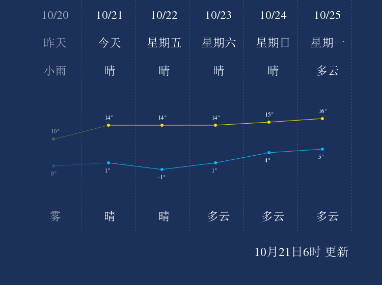 中国天气网讯 今天是10月21日星期四,一起来看天气。