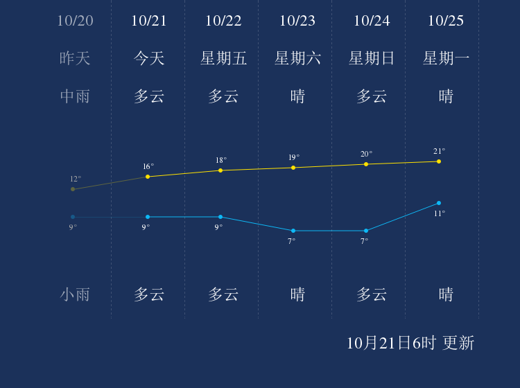 中国天气网讯 今天是10月21日星期四,一起来看天气。