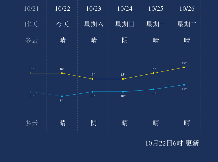 中国天气网讯 今天是10月22日星期五,一起来看天气。