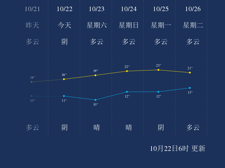 中国天气网讯 今天是10月22日星期五,一起来看天气。