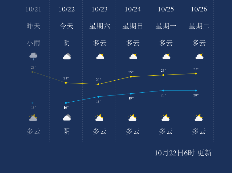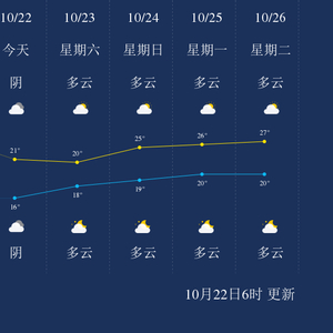 中国天气网讯 今天是10月22日星期五,一起来看天气。
