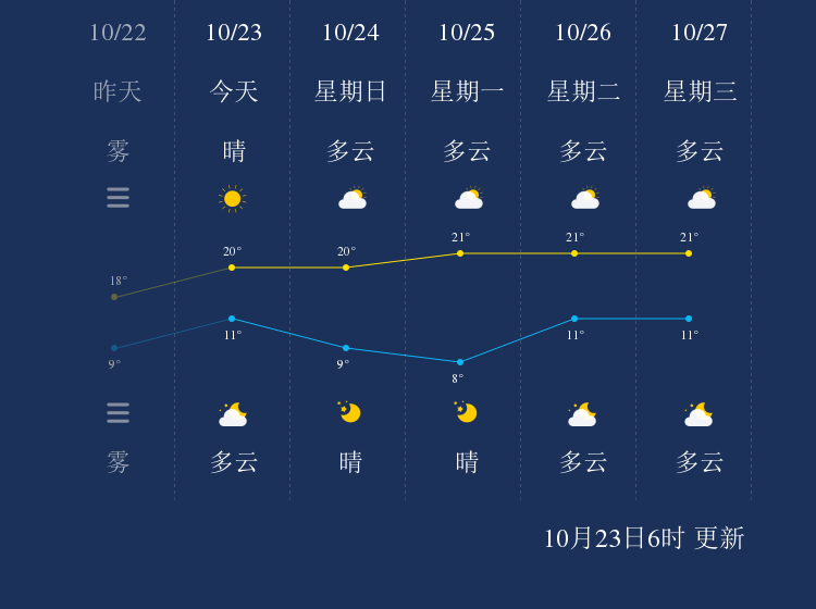今晨6时,宣城晴,气温9℃,东南风3-4级,相对湿度95%。