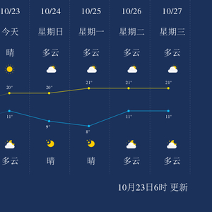 预计,今天白天晴,最高气温20℃,东风3-4级,今天夜间多云,最低气温11℃,微风。