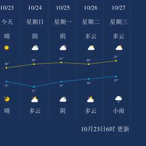 预计,今天白天晴,最高气温18℃,微风,今天夜间晴,最低气温13℃,微风。
