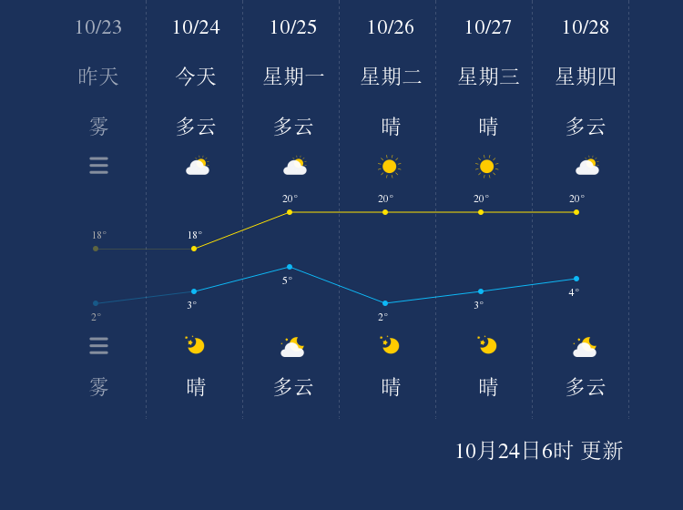 中国天气网讯 今天是10月24日星期日,一起来看天气。