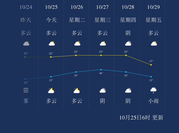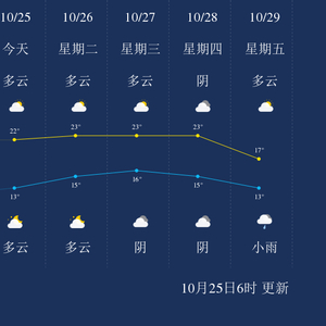 中国天气网讯 今天是10月25日星期一,一起来看天气。