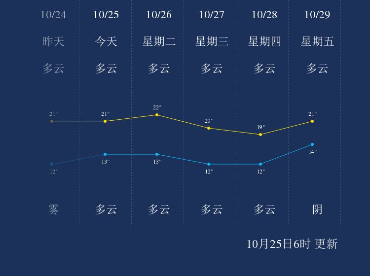 中国天气网讯 今天是10月25日星期一,一起来看天气。