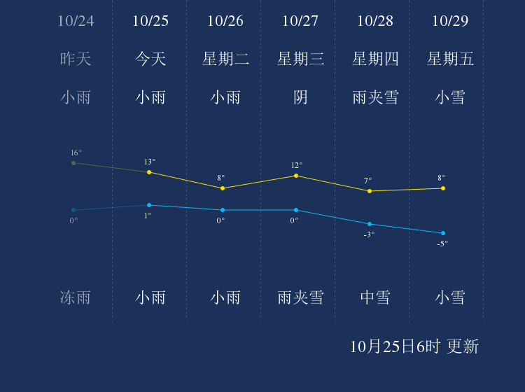 中国天气网讯 今天是10月25日星期一,一起来看天气。