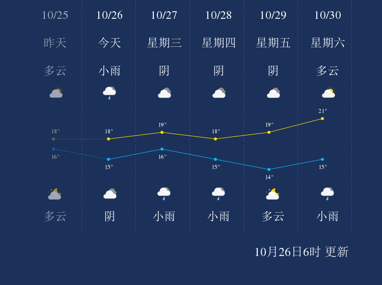 中国天气网讯 今天是10月26日星期二,一起来看天气。