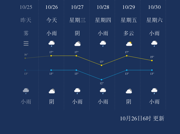 中国天气网讯 今天是10月26日星期二,一起来看天气。