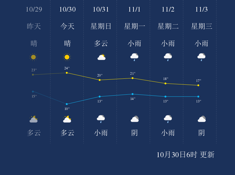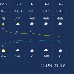 中国天气网讯 今天是10月30日星期六,一起来看天气。