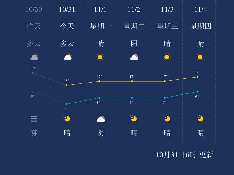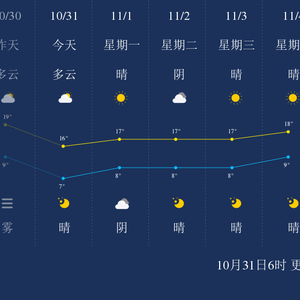 中国天气网讯 今天是10月31日星期日,一起来看天气。