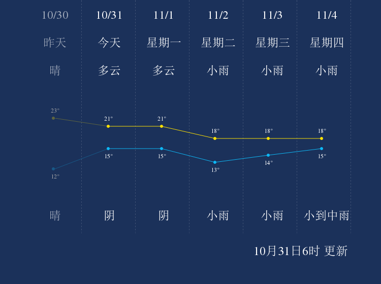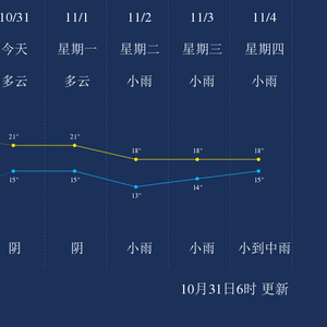 中国天气网讯 今天是10月31日星期日,一起来看天气。