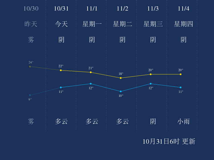中国天气网讯 今天是10月31日星期日,一起来看天气。