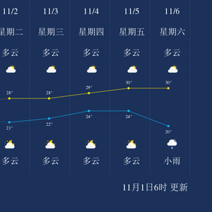 中国天气网讯 今天是11月1日星期一,一起来看天气。
