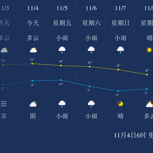 中国天气网讯 今天是11月4日星期四,一起来看天气。