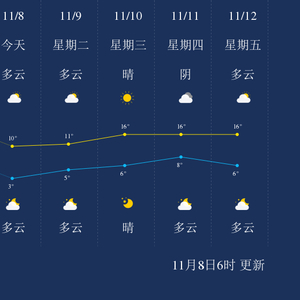 中国天气网讯 今天是11月8日星期一,一起来看天气。
