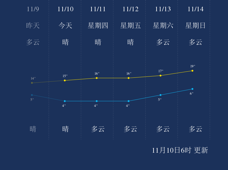 中国天气网讯 今天是11月10日星期三,一起来看天气。