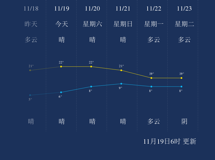 中国天气网讯 今天是11月19日星期五,一起来看天气。