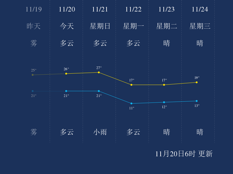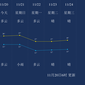 中国天气网讯 今天是11月20日星期六,一起来看天气。