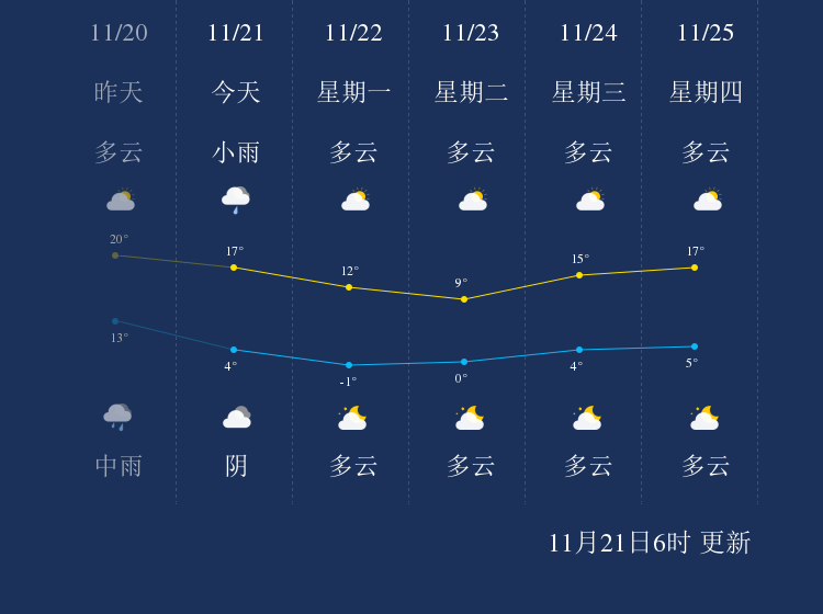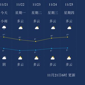 中国天气网讯 今天是11月21日星期日,一起来看天气。