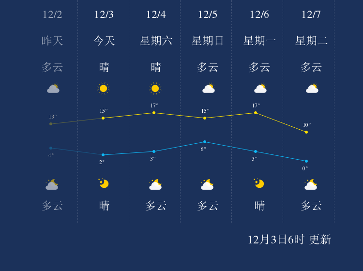 中国天气网讯 今天是12月3日星期五,一起来看天气。