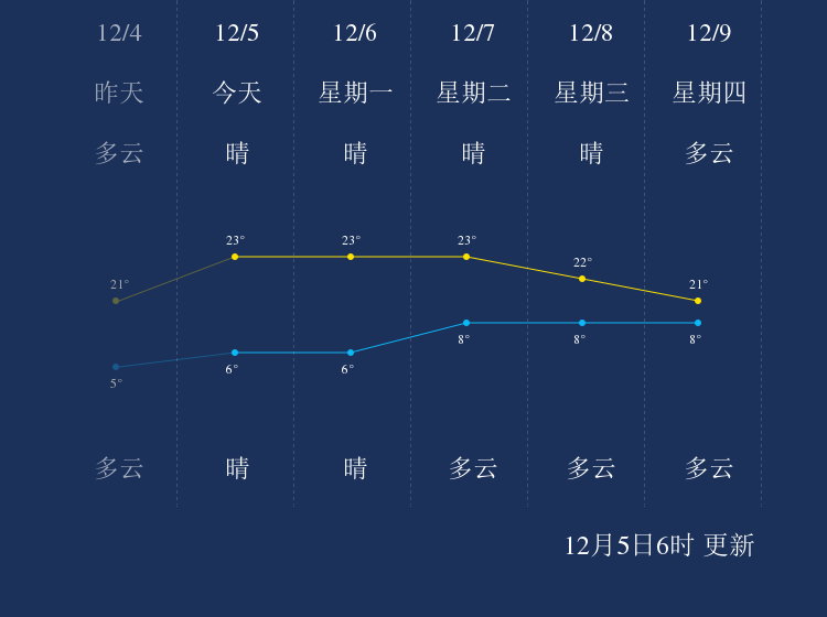 中国天气网讯 今天是12月5日星期日,一起来看天气。