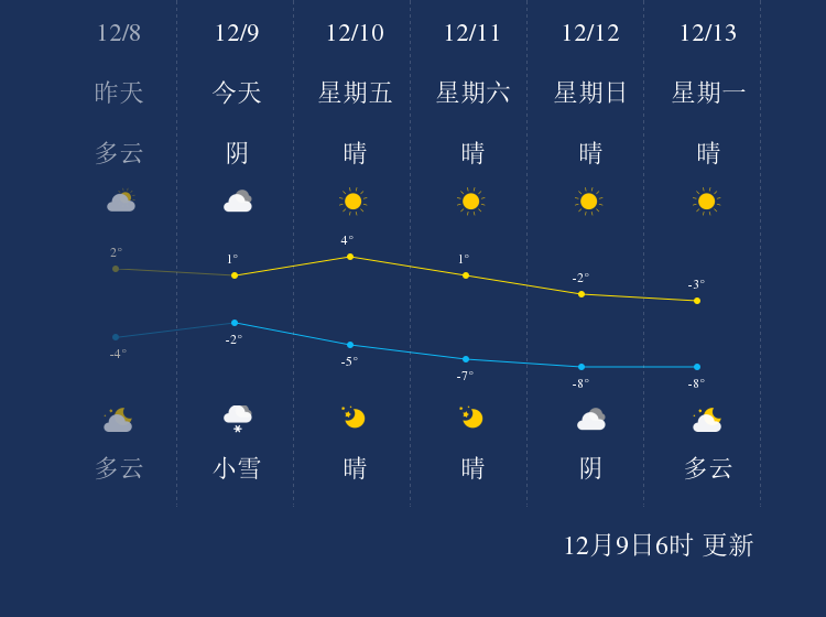 中国天气网讯 今天是12月9日星期四,一起来看天气。