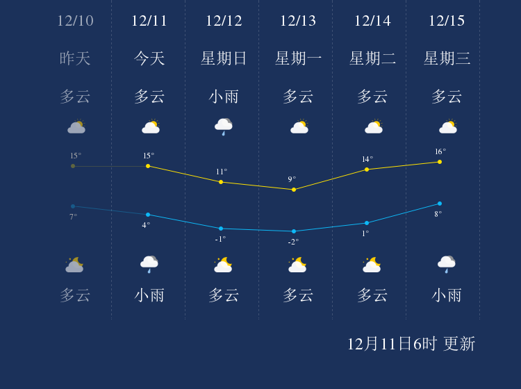 中国天气网讯 今天是12月11日星期六,一起来看天气。