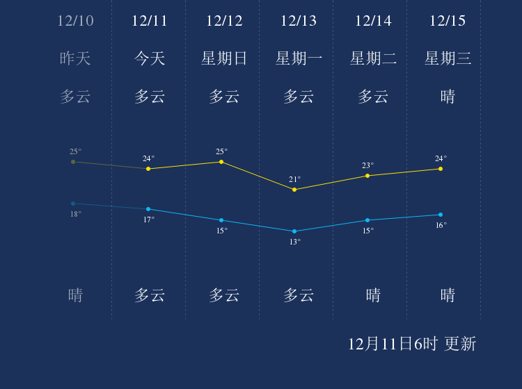 中国天气网讯 今天是12月11日星期六,一起来看天气。