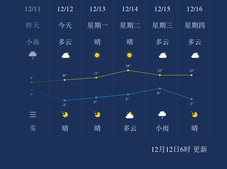 中国天气网讯 今天是12月12日星期日,一起来看天气。