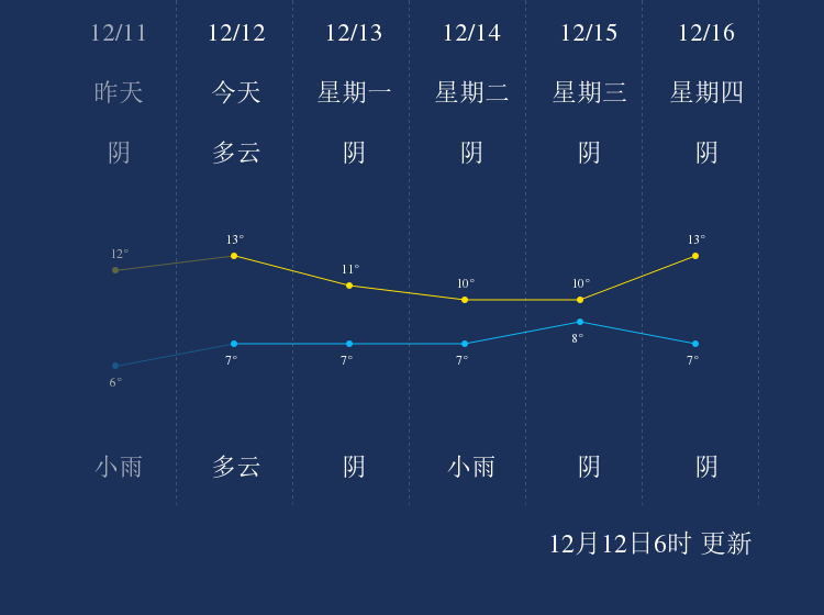 中国天气网讯 今天是12月12日星期日,一起来看天气。