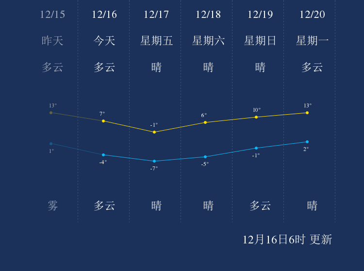 中国天气网讯 今天是12月13日星期一,一起来看天气。