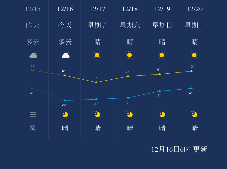 中国天气网讯 今天是12月13日星期一,一起来看天气。