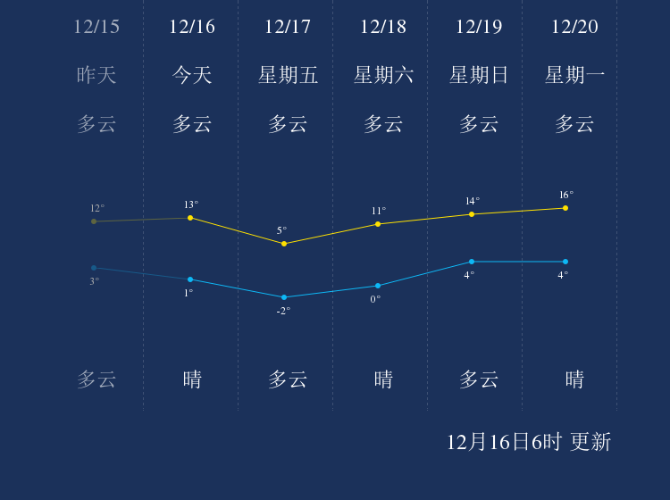 中国天气网讯 今天是12月13日星期一,一起来看天气。