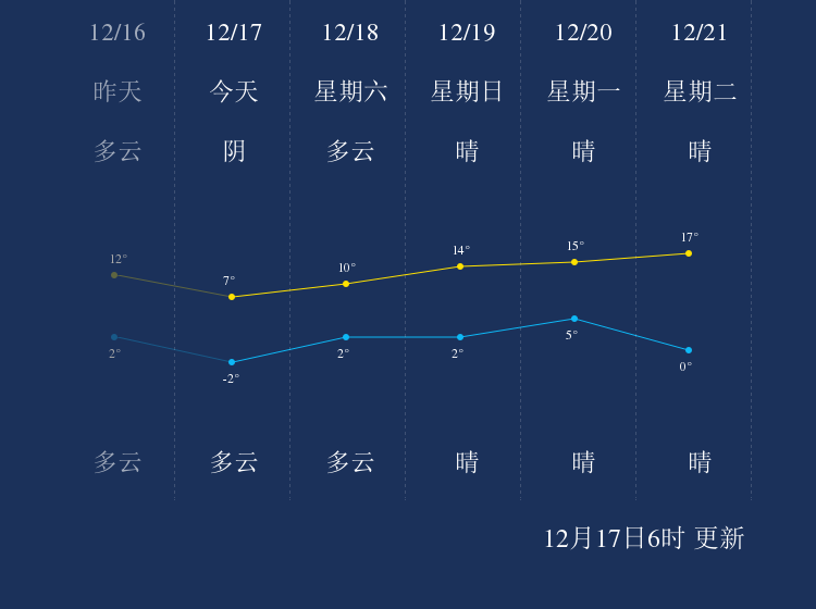 中国天气网讯 今天是12月17日星期五,一起来看天气。