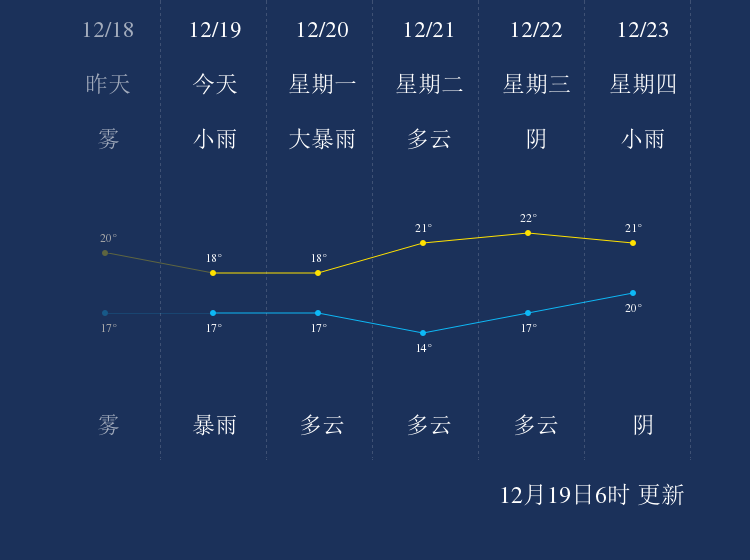 中国天气网讯 今天是12月19日星期日,一起来看天气。