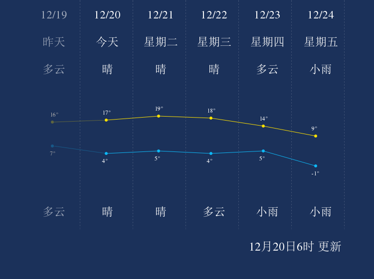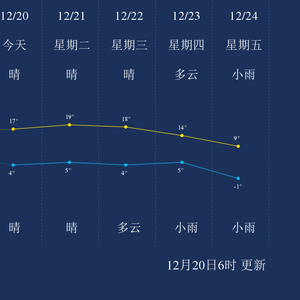 中国天气网讯 今天是12月20日星期一,一起来看天气。