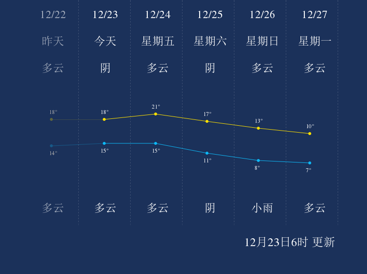 中国天气网讯 今天是12月22日星期三,一起来看天气。