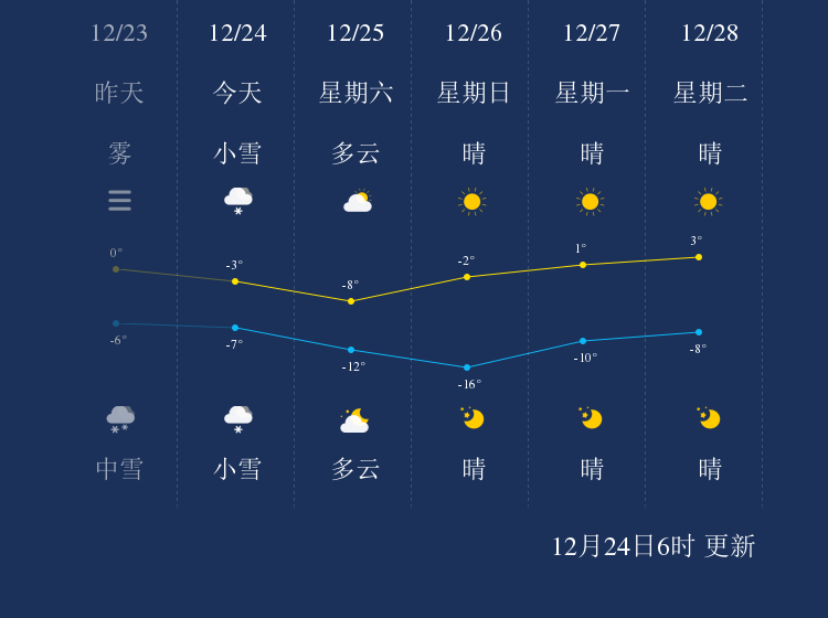 中国天气网讯 今天是12月24日星期五,一起来看天气。