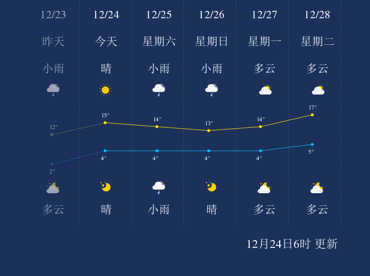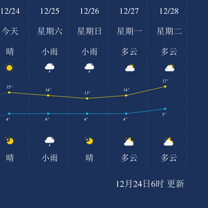 中国天气网讯 今天是12月24日星期五,一起来看天气。