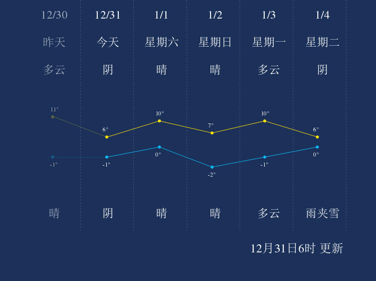 中国天气网讯 今天是12月31日星期五,一起来看天气。