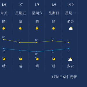中国天气网讯 今天是1月6日星期四,一起来看天气。